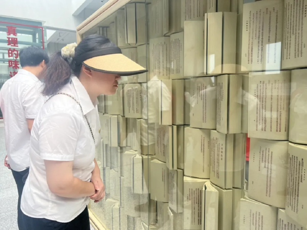 站外,外墻浮雕和廣場(chǎng)雕塑共同訴說(shuō)著“真理味道 信仰之源”的故事。第一部中文版《共產(chǎn)黨宣言》的翻譯全過(guò)程,在這里得到詳盡展示。點(diǎn)點(diǎn)燈火代表星星之火,中間的書(shū)本正是《共產(chǎn)黨宣言》,翻動(dòng)的書(shū)頁(yè),正是點(diǎn)亮世界的真理力量。